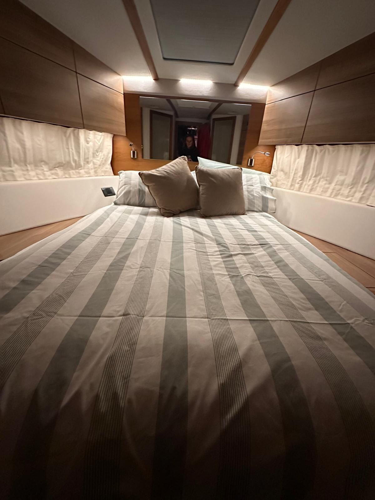Accommodation for 5/6 people over 2 cabins, master cabin with double island bed access to the shower cubicle on the port side and WC on the starboard side. Side cabin can be configured as 3 single berths or 1 double berth and 1 single berth. From the side cabin you have direct access to the second WC and large shower cubicle. Great storage over both cabins.